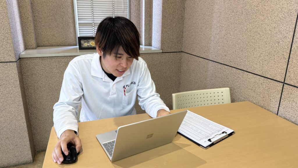 社員として入社する前は派遣バイトとしてフロニカで働いていたのですが、従業員の方が優しく働きやすい環境で好感を持っていました。そんな時に「一緒に働かないか」と声をかけていただき、色々話を聞かせていただきました。その方の仕事に対する姿勢や人に対する想いがとても尊敬でき、“この人についていきたい”と強く思ったのがきっかけでこの会社に転職することを決めました。入社後も手厚いサポートやアドバイスで助けていただき日々成長を実感できています。(今では一緒に釣りに行ったりもしています^^)